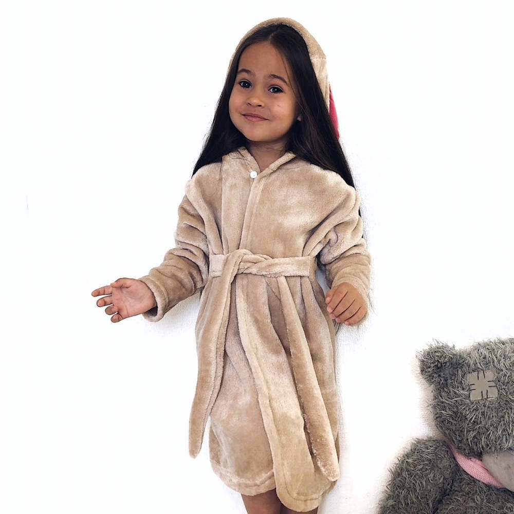 Kinderen imiteren volwassenen. Meisjes zijn blij om op mom'se schoenen met hakken aan te proberen. IK draag een gewaad thuis van tijd tot tijd, Mijn kind was blij dat ze haar eigen gewaad had net als haar moeder! De Kamerjas van mijn dochter is van een aangename licht roze kleur. Er is zijn zakken, Met een decoratieve functie. En dit is niet vanwege de capaciteit, maar vanwege de leeftijd. Kinderen op deze leeftijd gebruik geen zakken. En het is goed. De gewaad absorbeert water op het lichaam zeer comfortabel na het nemen van een bad of mee te nemen naar het zwembad. De bevestigingsmiddelen van onze kamerjassen zijn niet geurig en heeft een riem van voldoende lengte. Mijn dochter houdt zeer veel van dit gewaad. De mouwen zijn ruime, zoals de kamerjas zelf, niets is geperst. En niet beperkend voor bewegingen. Het Wassen van het product tolereert goed, strijken is niet nodig.