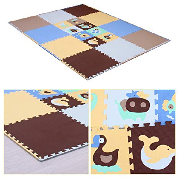 Baby Matten met hek dinosaurus stijl met 18 dik (0.56") schuim tegels kinderen kamer Decor grote Vloermatten in elkaar grijpende patronen. Maat 94.5 X 73.3 CM
