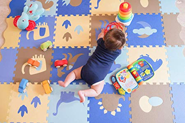 Baby Matten met hek dinosaurus stijl met 18 dik (0.56") schuim tegels kinderen kamer Decor grote Vloermatten in elkaar grijpende patronen. Maat 35.4 X 75.9 CM