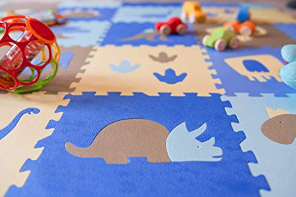 Baby Matten met hek dinosaurus stijl met 18 dik (0.56") schuim tegels kinderen kamer Decor grote Vloermatten in elkaar grijpende patronen. Maat 35.4 X 75.9 CM