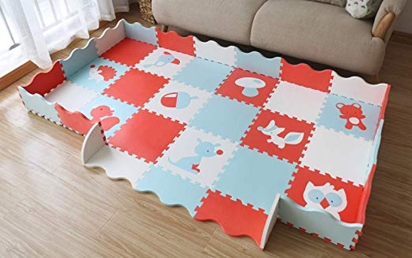 Baby Matten met hek dinosaurus stijl met 18 dik (0.56") schuim tegels kinderen kamer Decor grote Vloermatten in elkaar grijpende patronen. Maat 47.2 X 82.7 CM