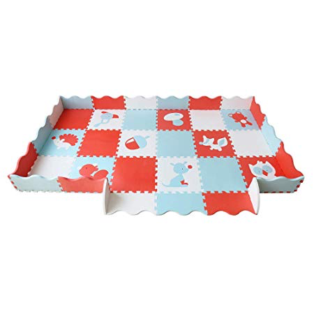 Baby Matten met hek dinosaurus stijl met 18 dik (0.56") schuim tegels kinderen kamer Decor grote Vloermatten in elkaar grijpende patronen. Maat 47.2 X 82.7 CM