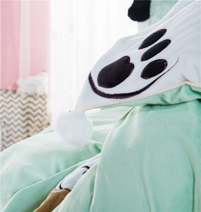 Applique Borduurwerk Flanel Fleece Stof Dekbedovertrek laken met Linnen Kussensloop