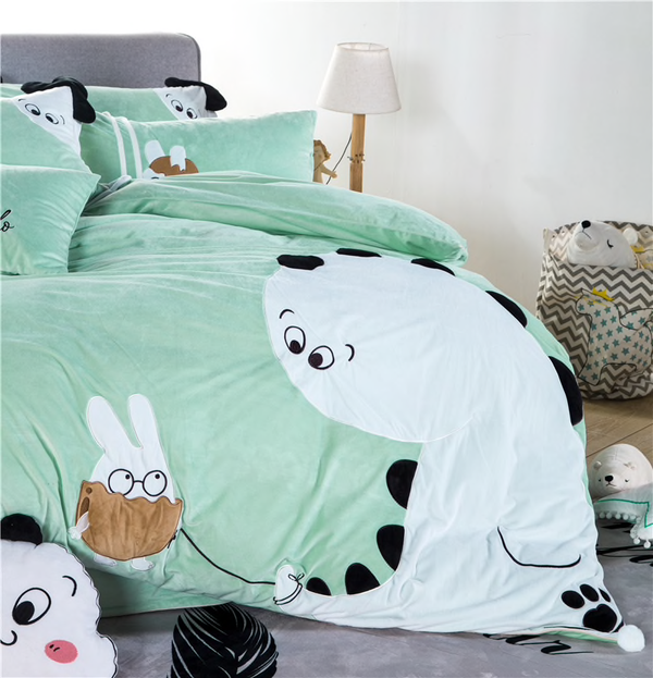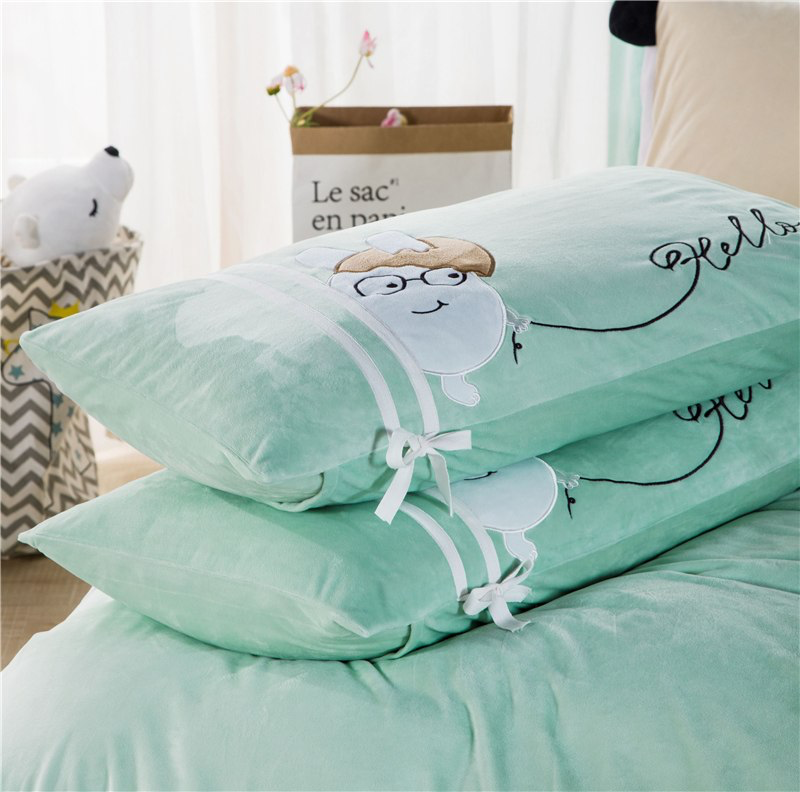 Applique Borduurwerk Flanel Fleece Stof Dekbedovertrek laken met Linnen Kussensloop