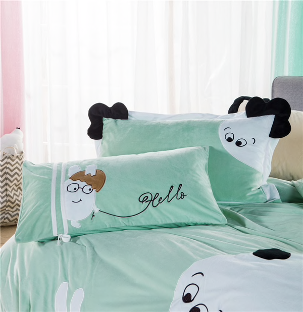 Applique Borduurwerk Flanel Fleece Stof Dekbedovertrek laken met Linnen Kussensloop